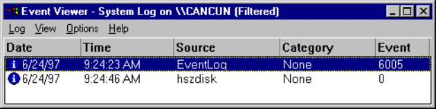 ■ If an entry for hszdisk appears with a 1 in the Event column, hszdisk did