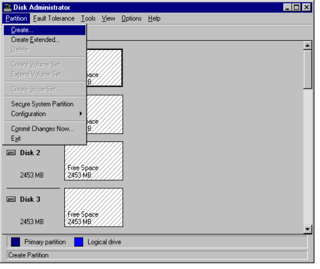2. Select the Partition pull-down menu and choose Create (see Figure 7-3)