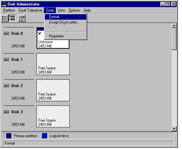 1. While still running Disk Administrator, click the Tools pull-down menu