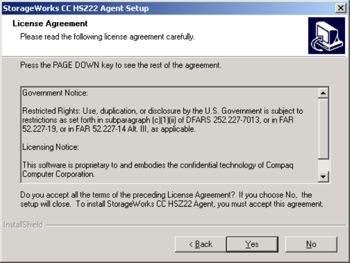 5. The next screen is the StorageWorks CC HSZ22 Agent License