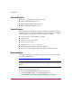 Documentation Supported Switches Fabric OS v3.1.3a supports the following switches: ■ HP StorageWorks SAN Switch 2/8 ■ HP StorageWorks MSA SAN switch 2/8 ■ HP StorageWorks SAN Switch 2/16 Technical Support Contact Hewlett-Packard support for hardware, firmware, and software support, including product repairs and part ordering.