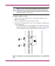 — For an HP System/e rack, install each of the two rear mounting brackets with (2) #10-32 x 1/2-inch Phillips pan-head screws and (2) #10 alignment washers as shown in Figure 3. Figure 3: Installing the rear mounting brackets (HP System/e rack-left rear upright) Note: This kit contains both left rails and right rails. The rails are marked with Right and Left to distinguish the rails from each other.