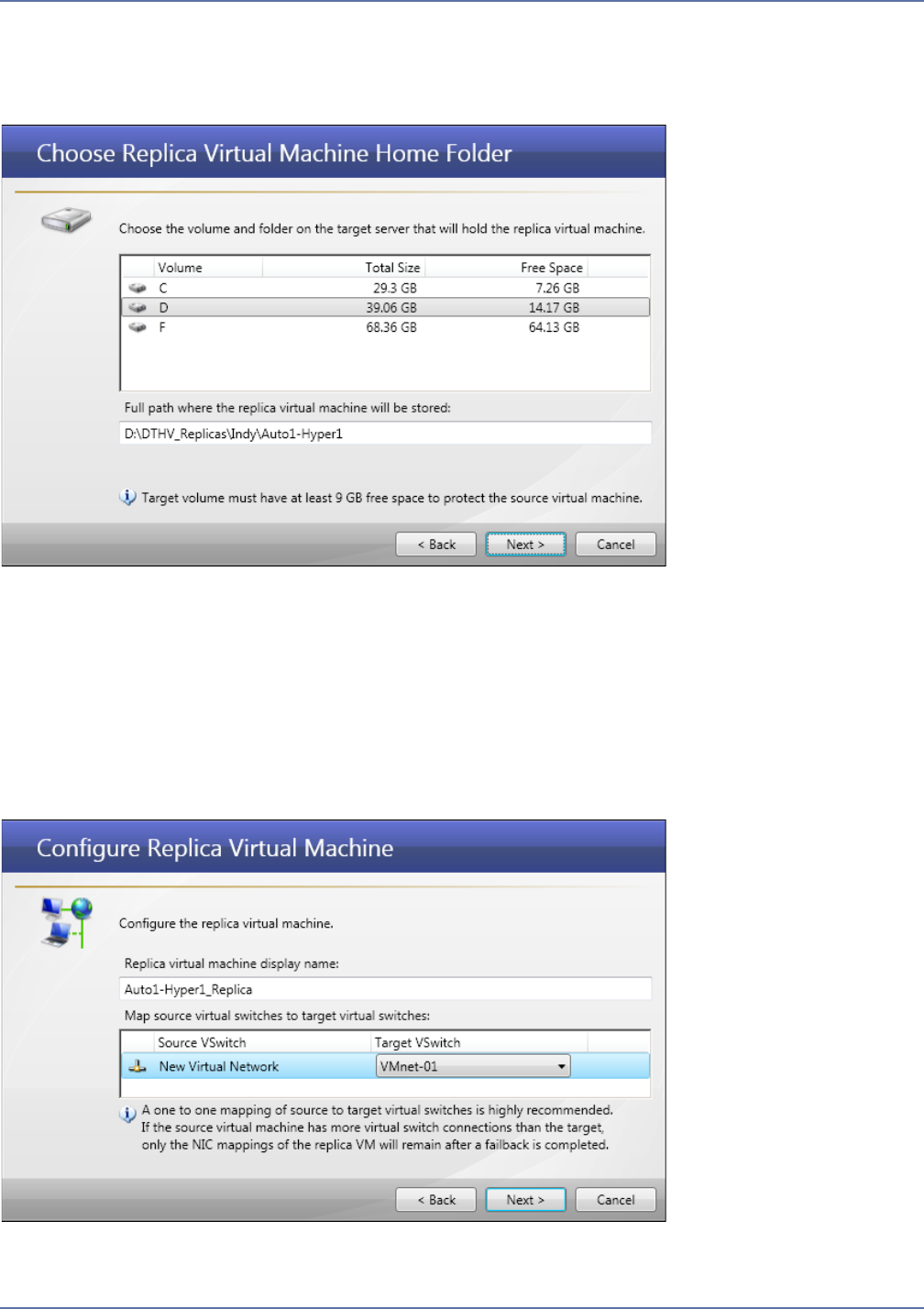 Select the volume on the Hyper-V target where you would like the replica virtual machine to be