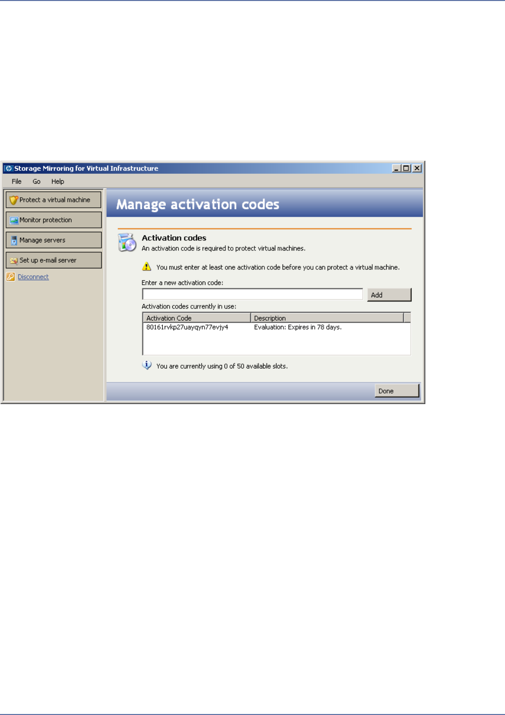 Type in a new SMVI activation code to be used for a protected virtual machine, then click Add. When