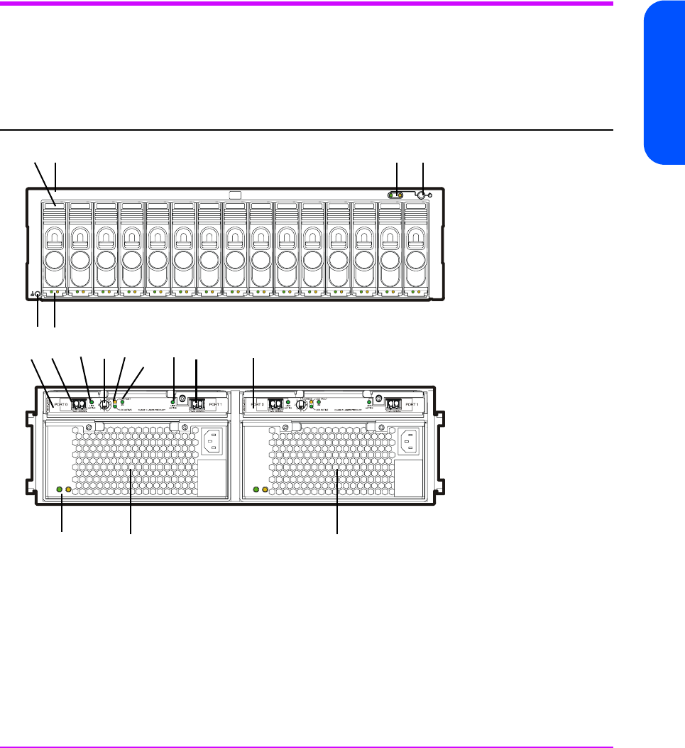 Figure 7 shows the front and rear panel components of the disk enclosure