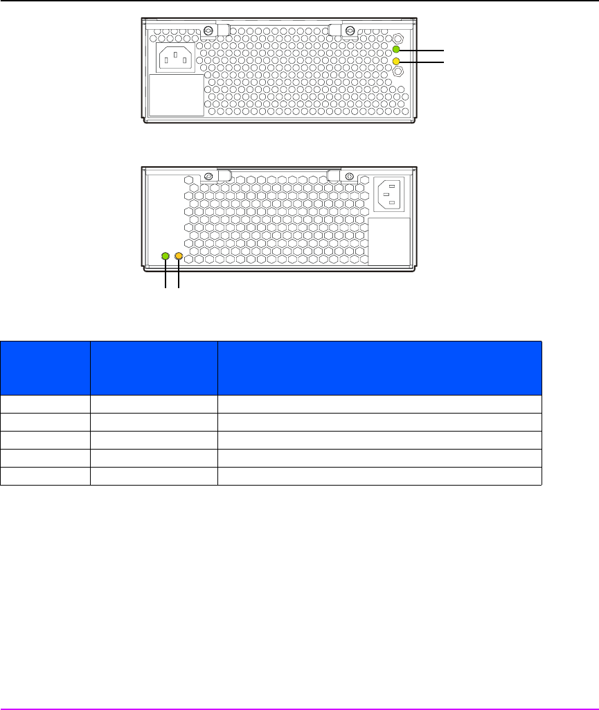 Figure 31 Power Module LEDs (Upper: Controller Enclosure; Lower: Disk Enclosure)