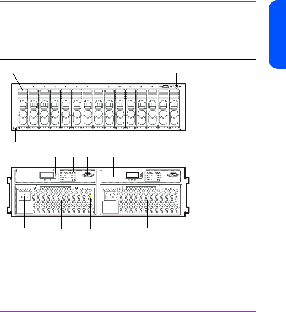 1 - Power/Standby Switch 9 - HOST FC LEDs