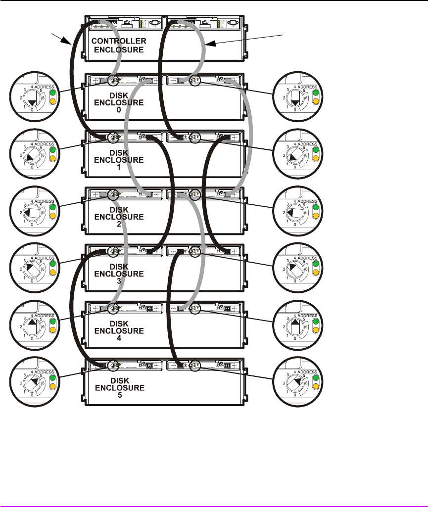 Figure 14 VA 7410 Back-End Fiber Optic Cabling & Addressing (6 Disk Enclosures)