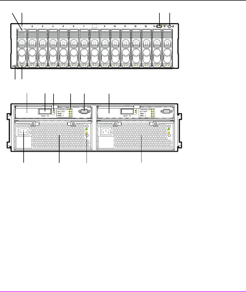 1 - Power/Standby Switch 9 - HOST FC LEDs