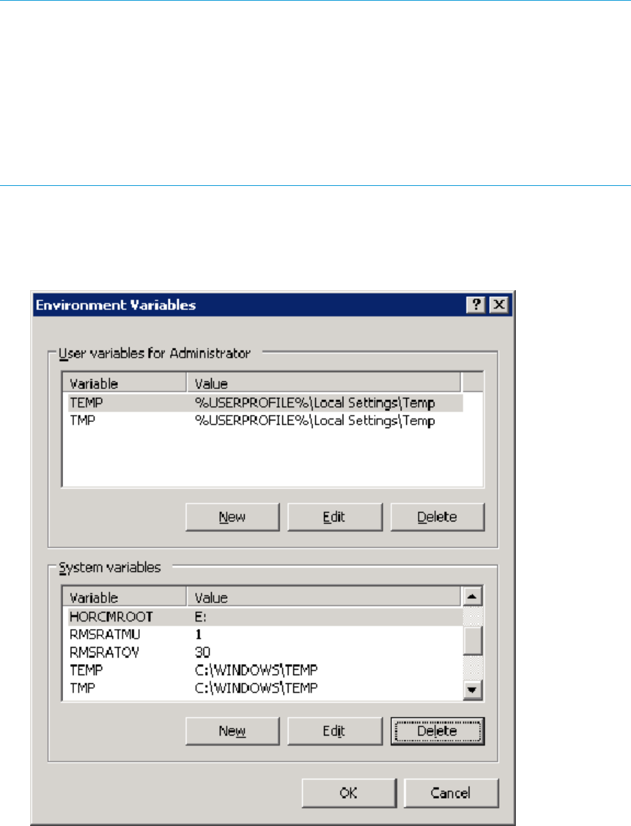 2. Select the Advanced tab, click the Environment Variables button, and add HORCMROOT,