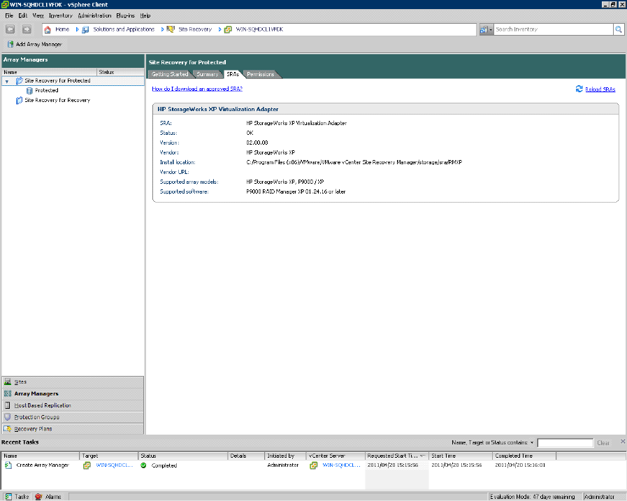 7. To configure the Array Manager on recovery, when the protected and recovery SRM servers