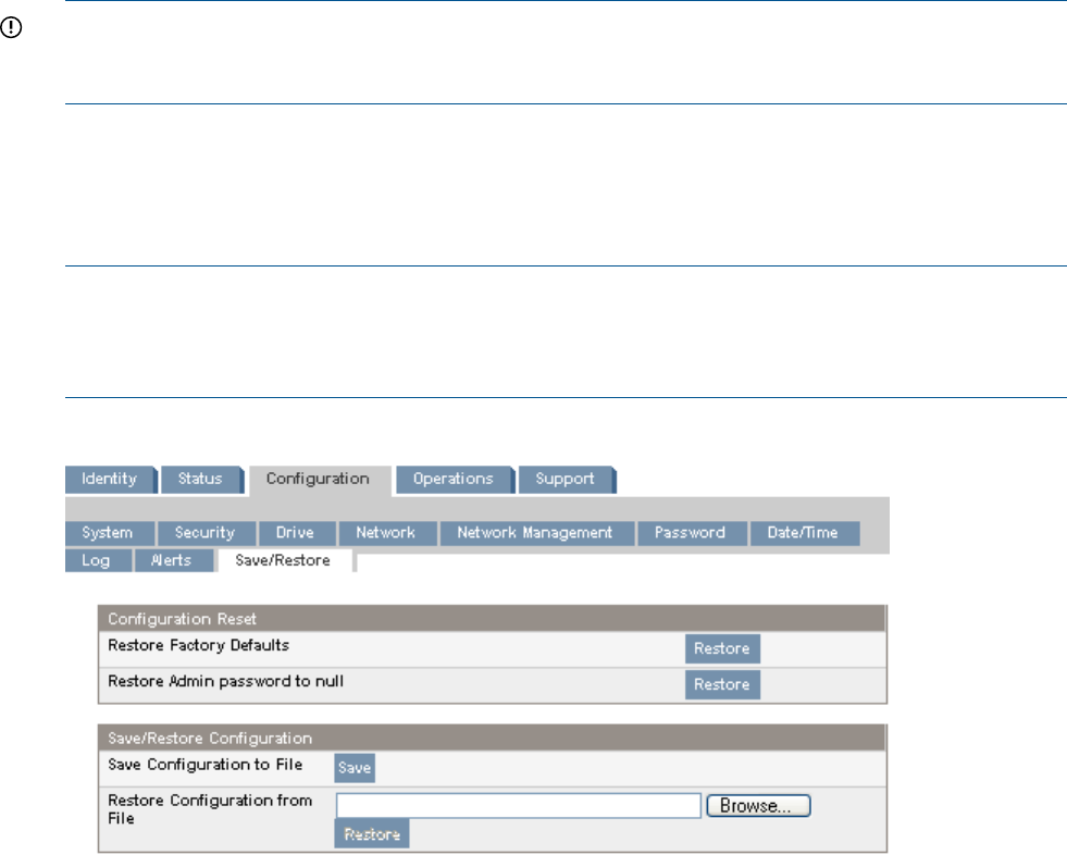 Configuration) (page 115). For the MSL4048, MSL8048, and MSL8096, see Saving and restoring