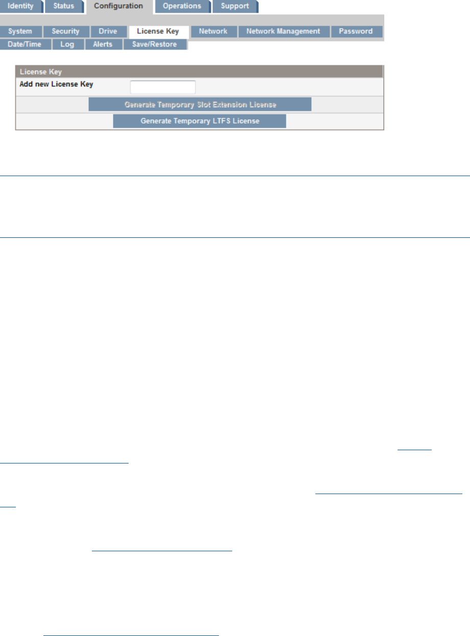Enabling the LTFS feature requires a license for the library. Use the RMI Configure: License Key
