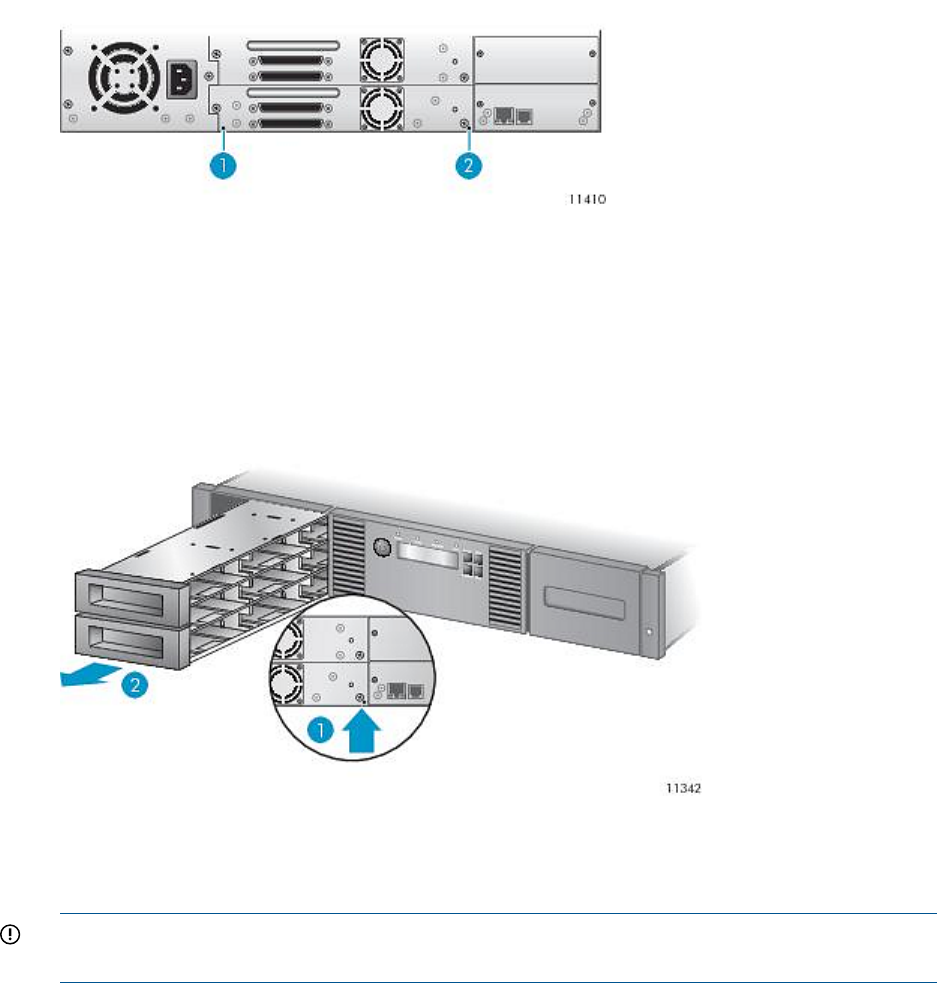 holes on the bottom tape drive plate. For the MSL4048, MSL8048, and MSL8096, the library