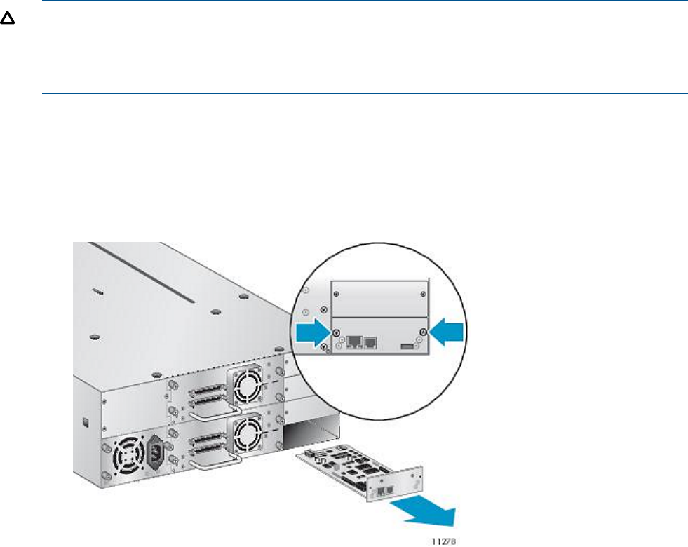 CAUTION: This part is not hot-pluggable. You must power off the library to replace the library