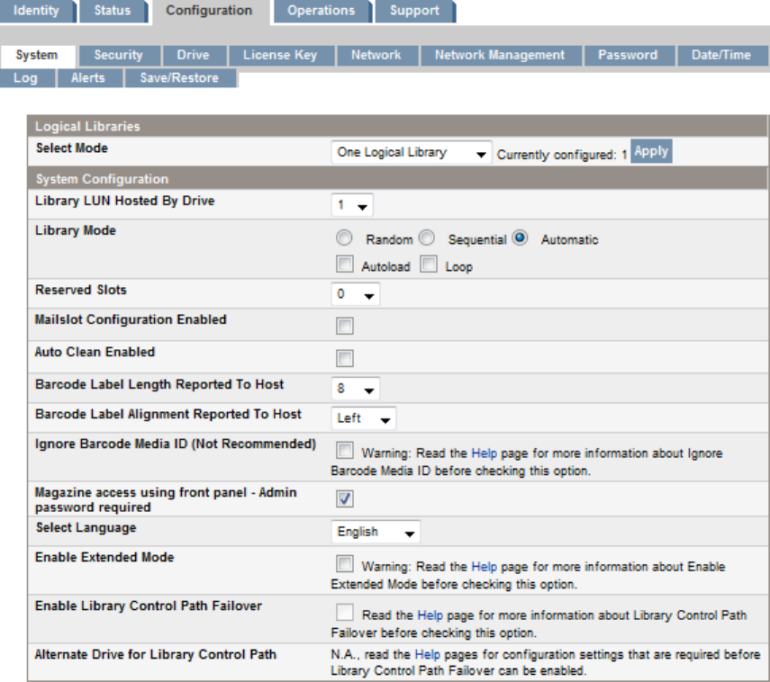 from those for each logical library, as shown in the Configuration: System page.