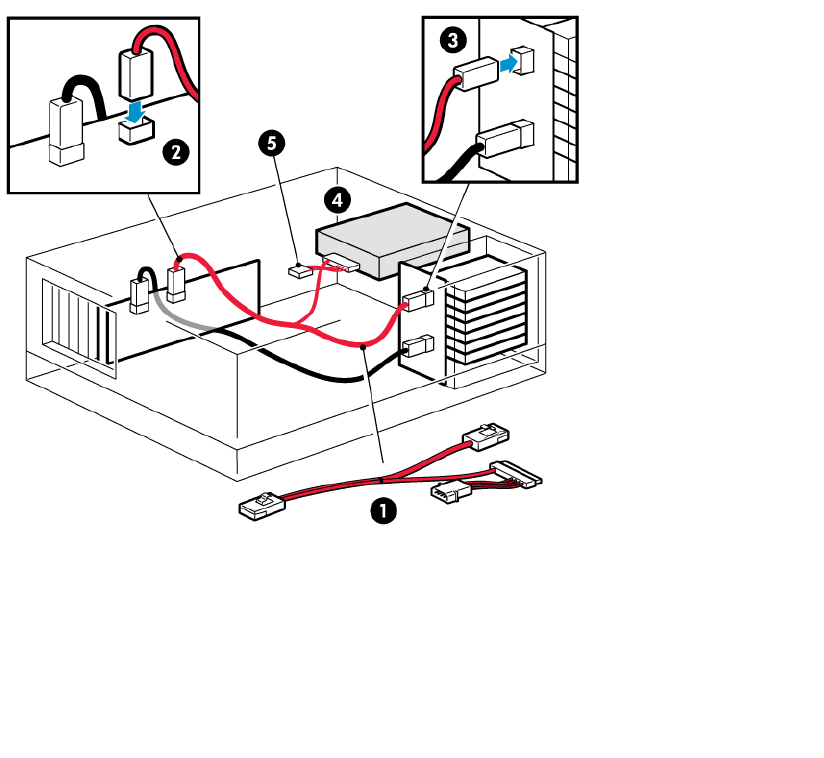 5. Power connector to server's power supply2. Connect replacement split SAS cable to host HBA