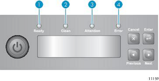 Clean. Illuminated when a cleaning cartridge should be used.Amber2.