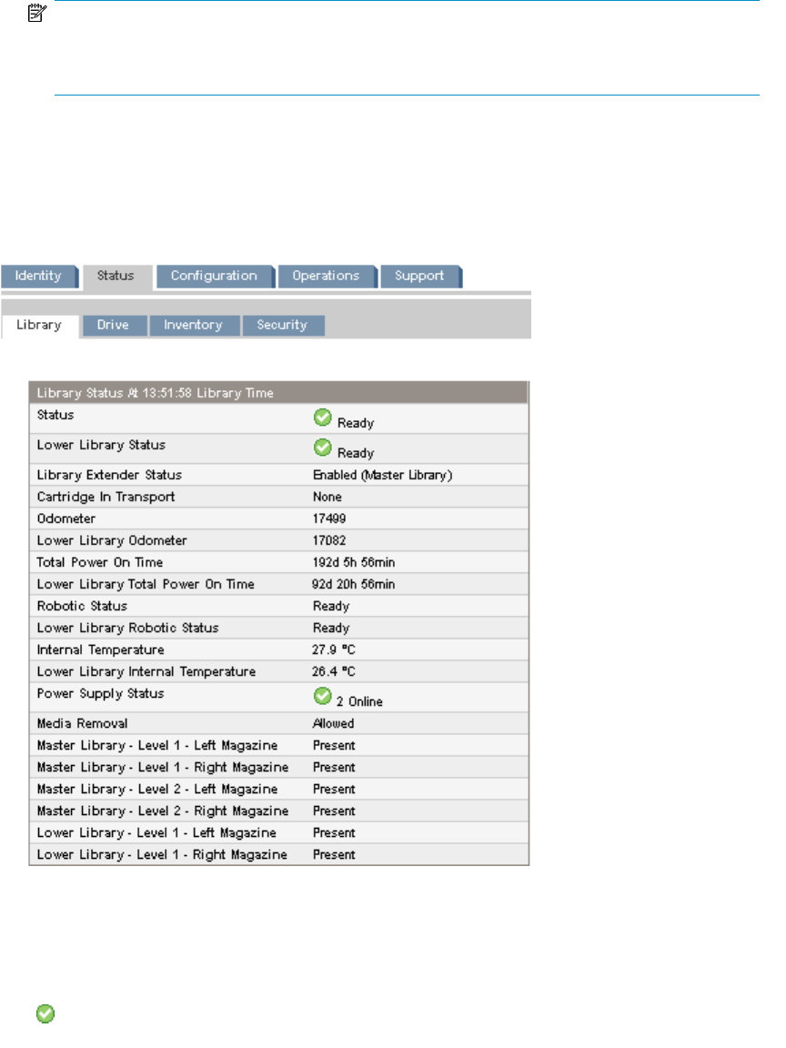 For detailed status information, use the RMI Status > Library page or OCP Info > Status screen.