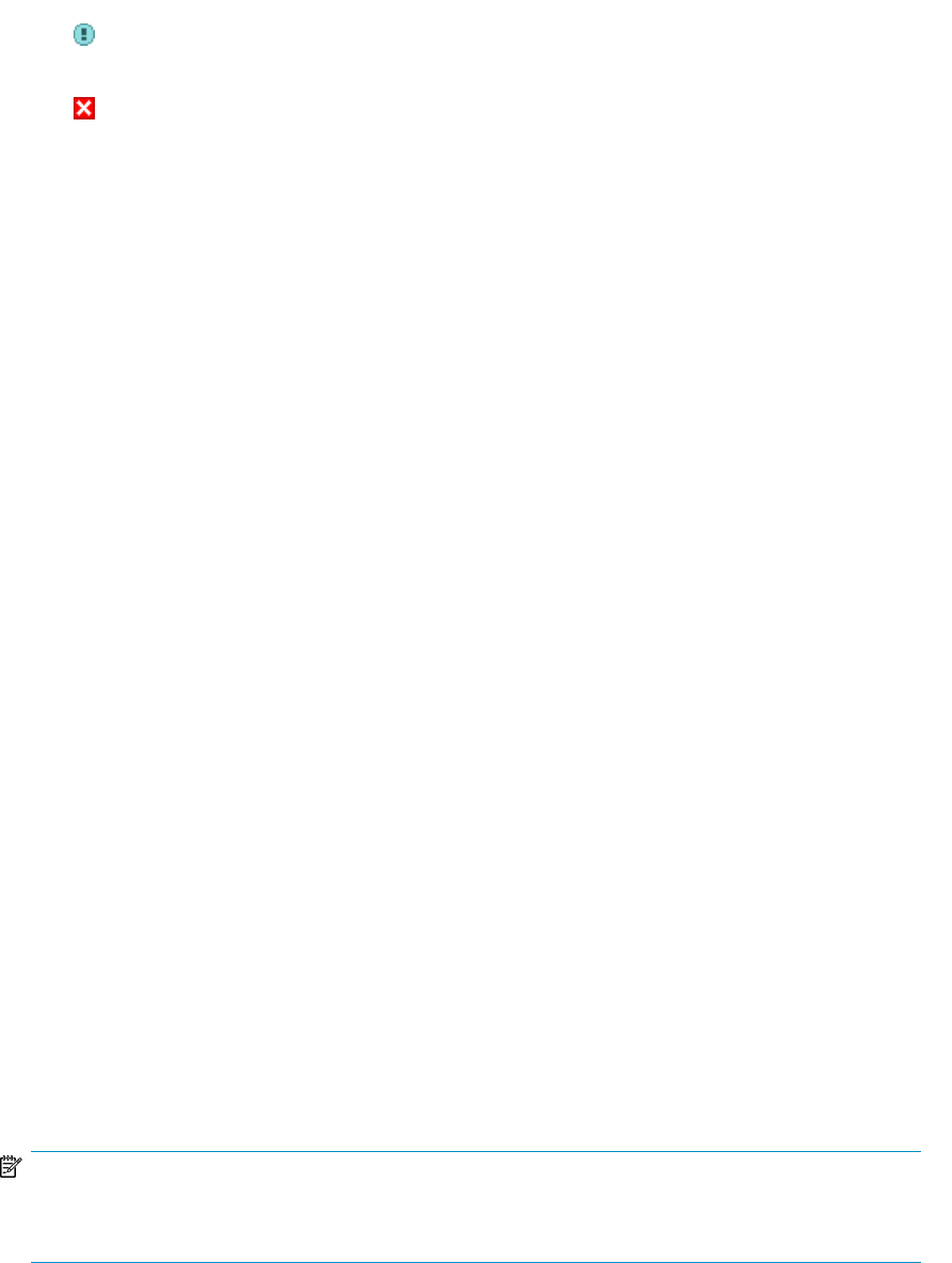 The blue exclamation point Status Warning icon indicates that user intervention is necessary, but