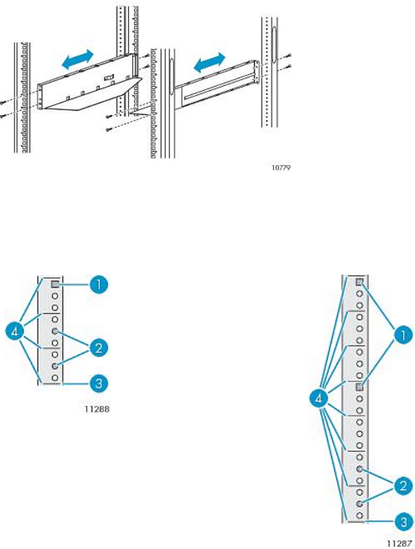 3. For the MSL4048, MSL8048, and MSL8096 insert the clip nuts on the front of the rack in the