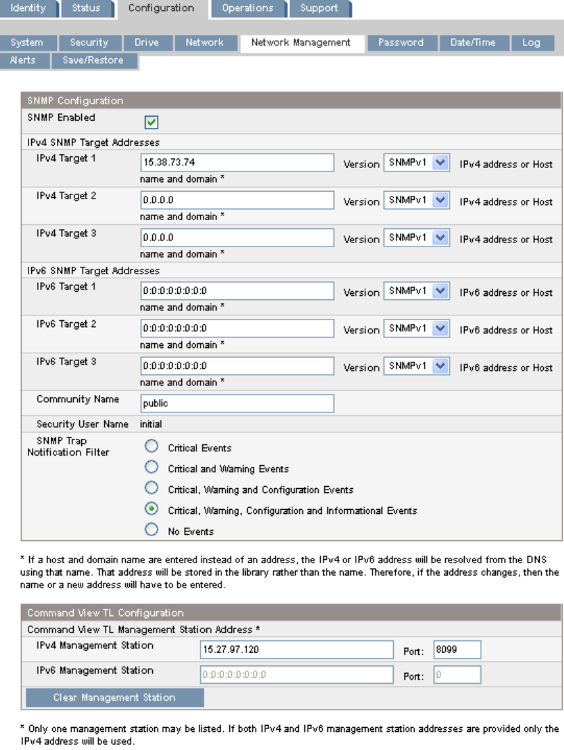 to manage the library and will not receive traps from the library. You can select the SNMP