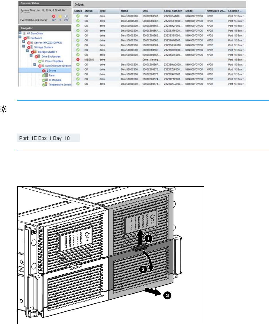 1. Identify which drive needs replacing and its drawer and bay location. This information may