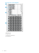 Figure 12 8-system cabling 1. HP VC Flex-10 or HP VC FlexFabric modules (2) 2. HP 6Gb SAS BL switches (2) 3. HP ProLiant Onboard Administrator 4.