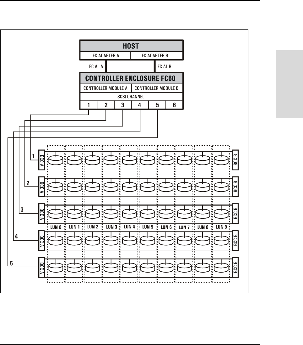 For high-availability, one disk per SCSI channel is used as a global hot spare.