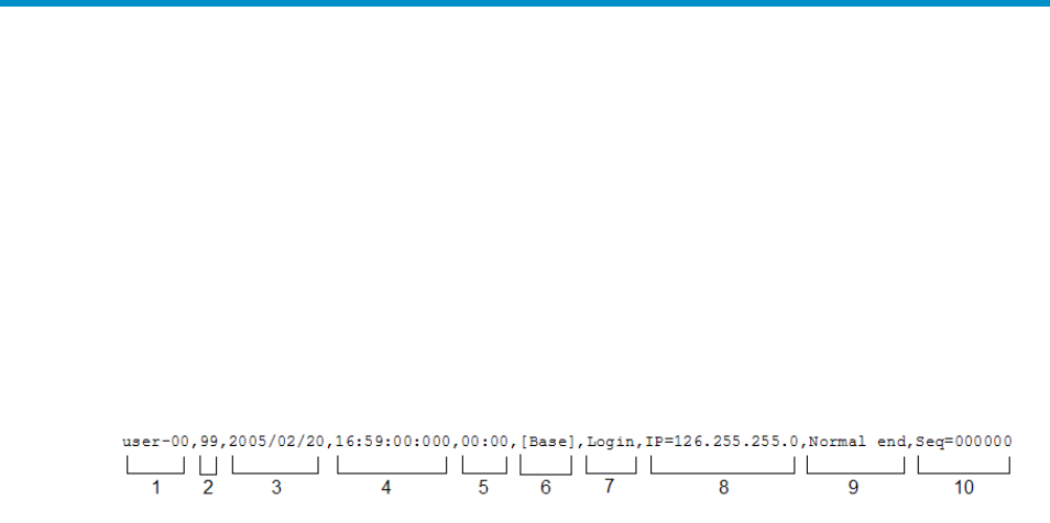 (login or logout), IP address, result, and serial number. Each item is separated by a comma (see