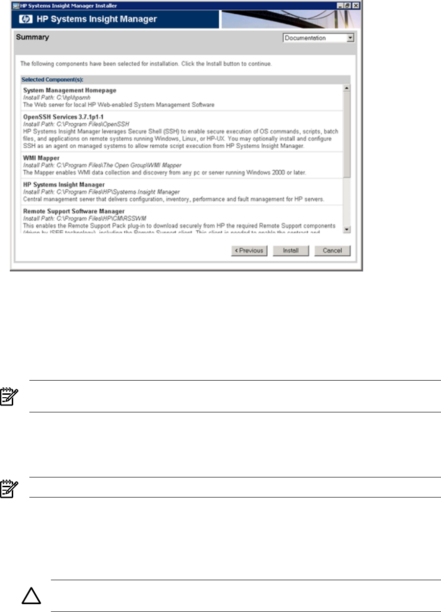 NOTE: If at any time during the install of HP System Management Homepage you click Cancel,