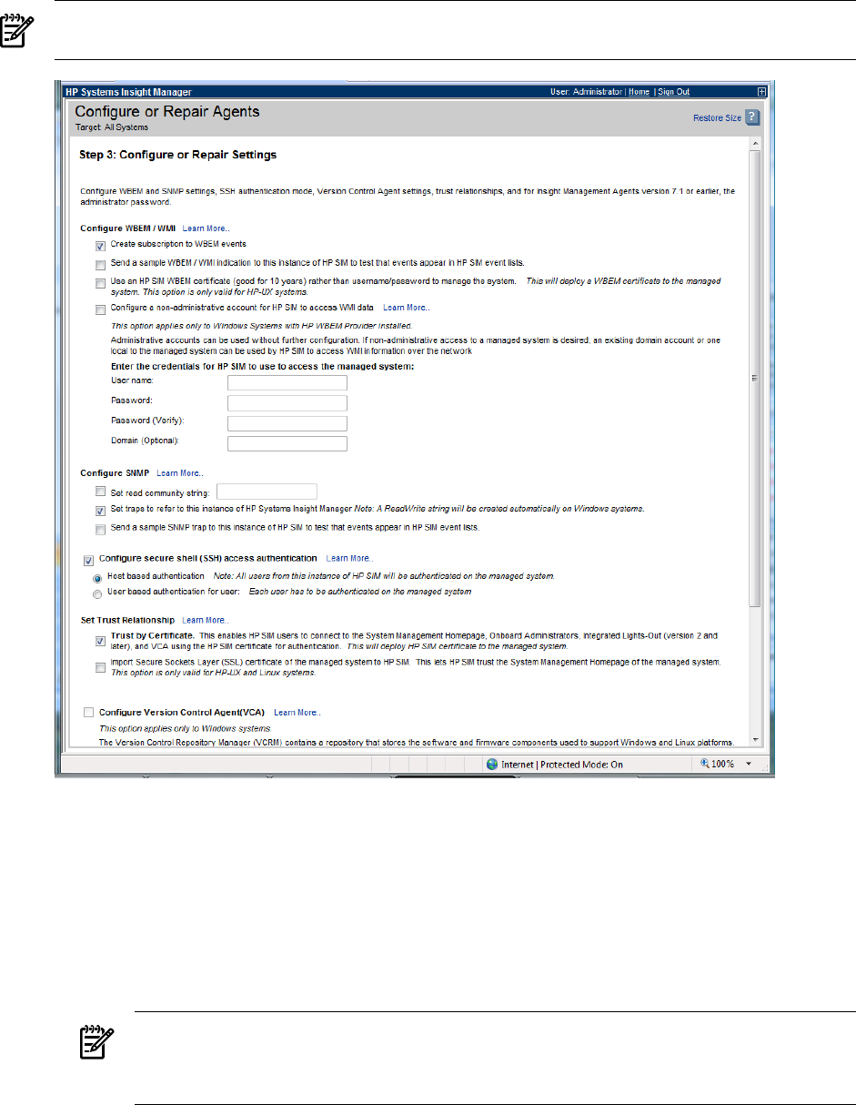 • Configure a nonadministrative account for HP SIM to access WMI data This option applies
