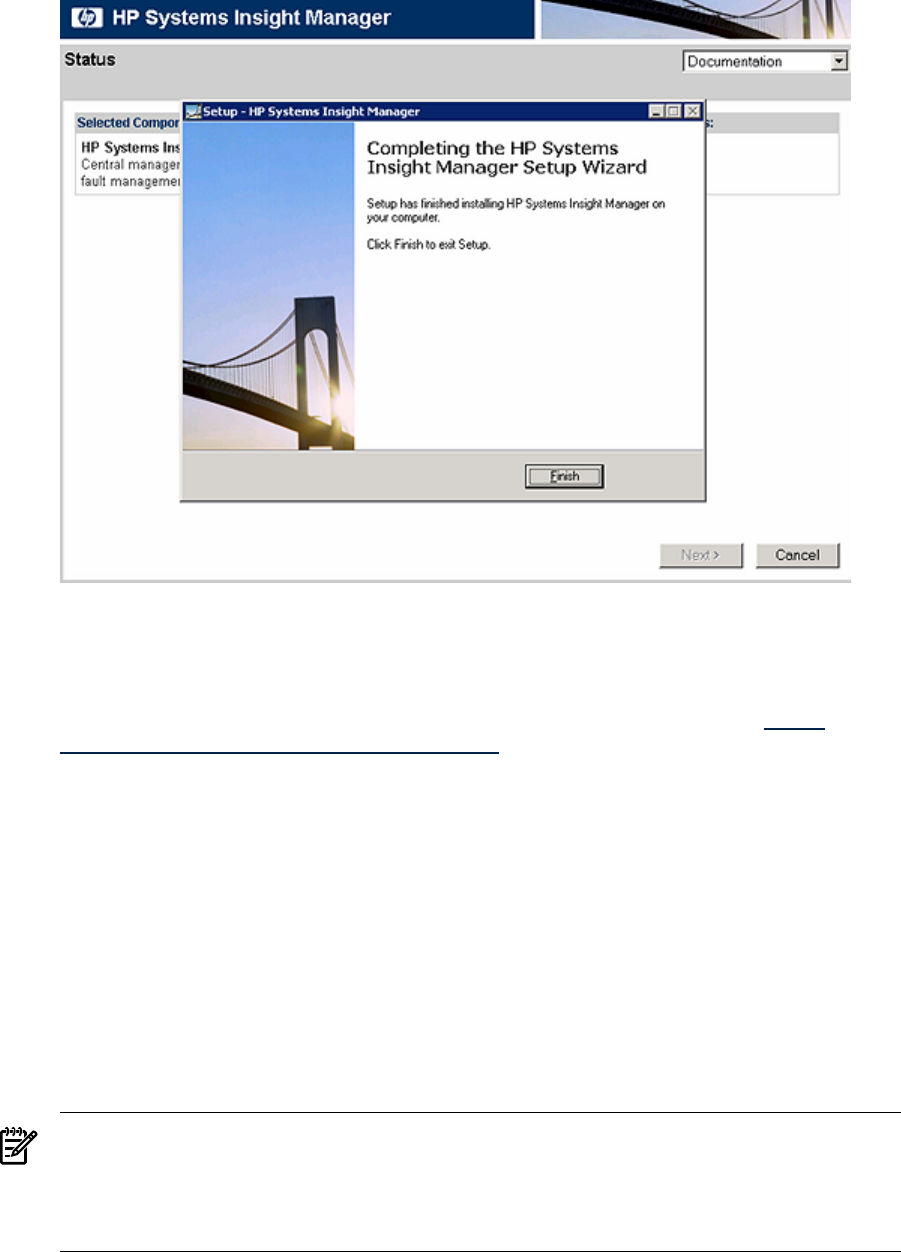 e. After the HP SIM installation is complete, the Remote Support Software Manager installation window