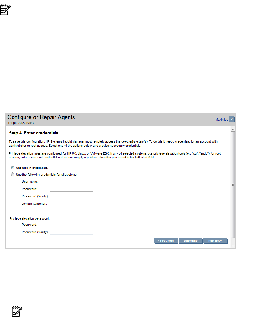 step must work for all selected target systems. HP recommends using domain administrator credentials.
