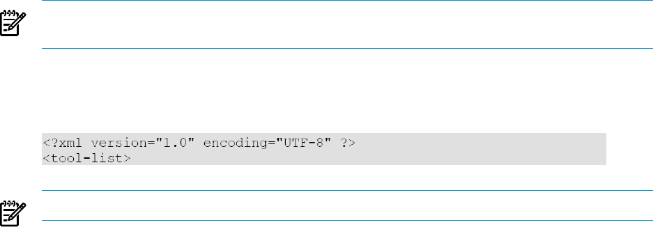 4. Following the leading XML version and tool-list tags, type the tool name tag of