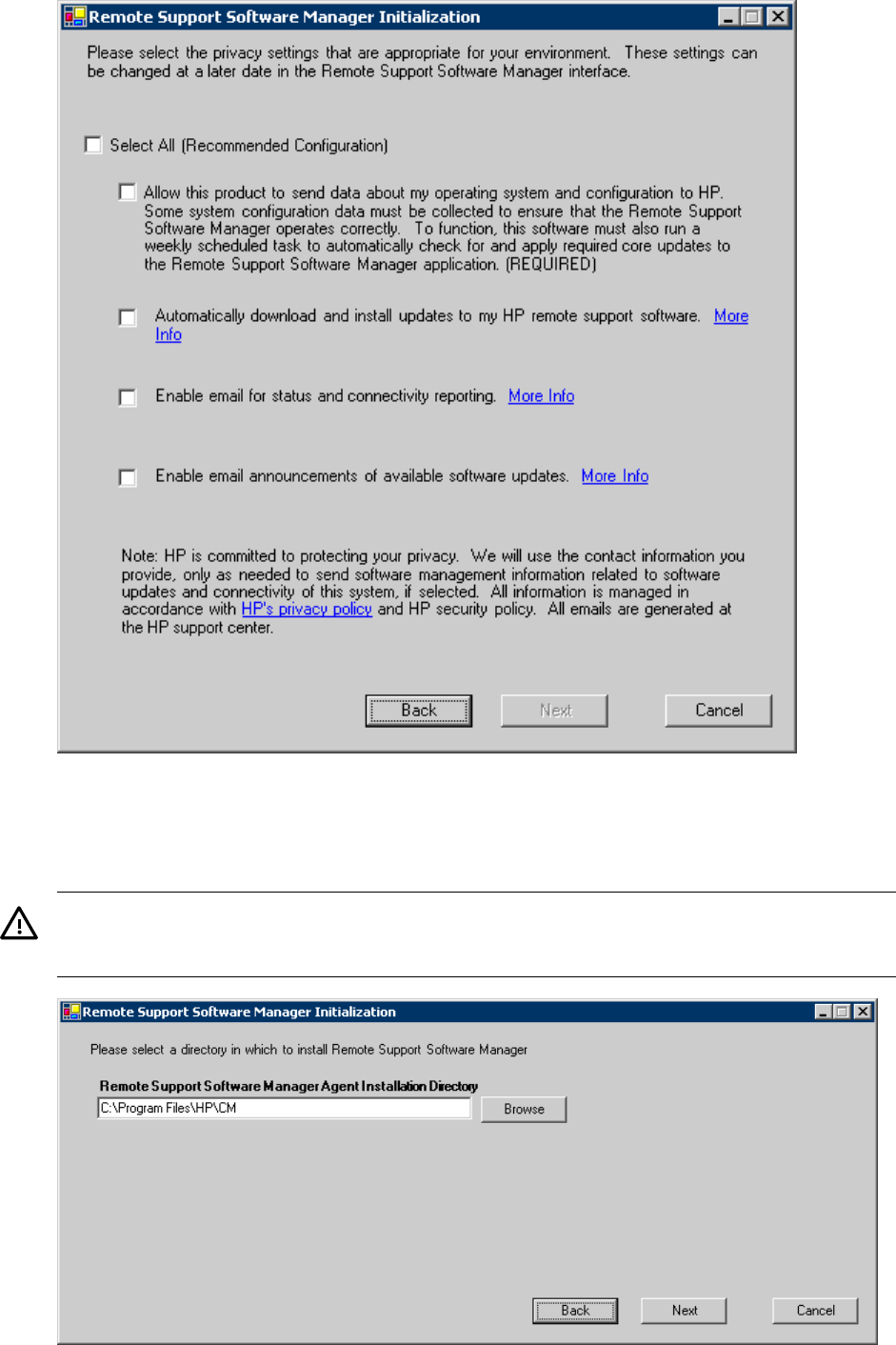 installing HP Remote Support Software Manager. Either choose the default installation path or use ANSI
