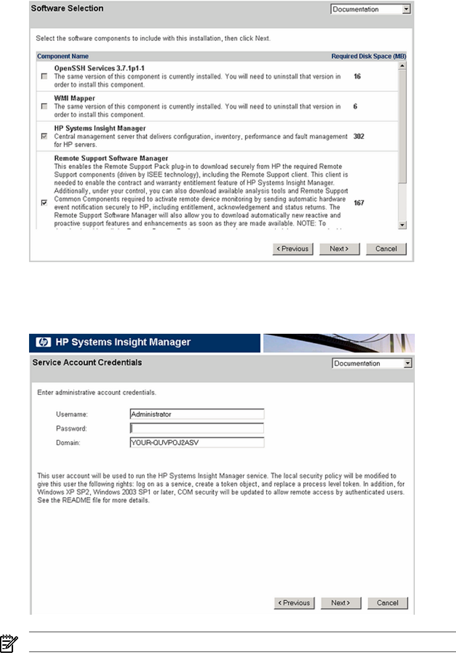NOTE: This user account is used to run the HP Systems Insight Manager service.