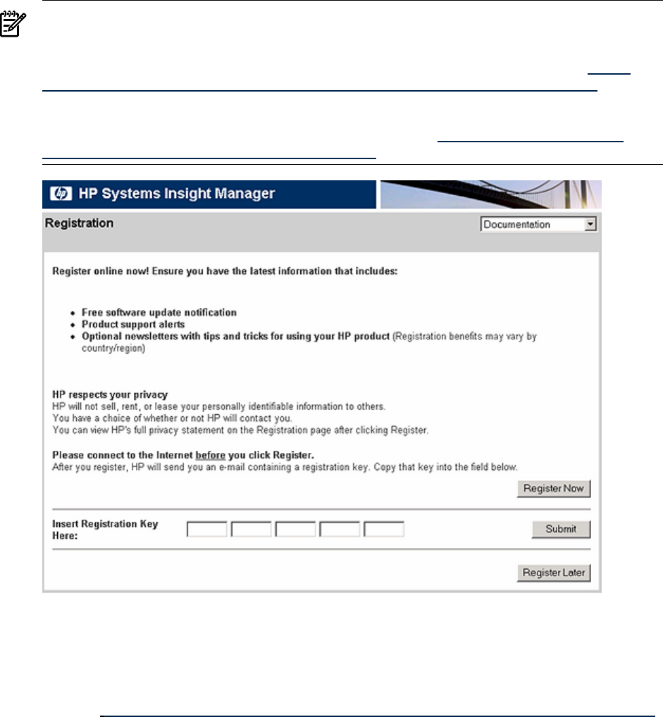 register HP SIM or click the Register Later to register at another time. If your HP SIM system is not
