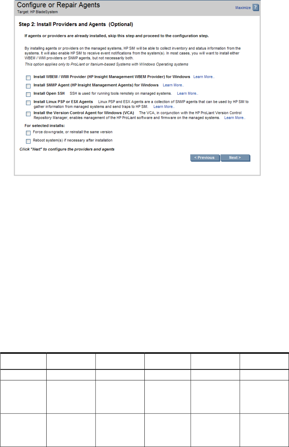 HP SIM determines the type of agent or provider to install based on the system type, subtype, and