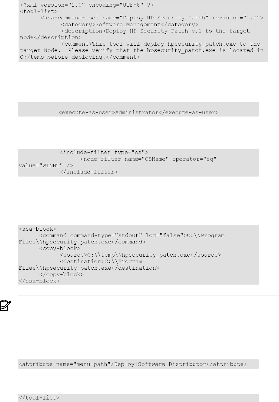 define the tool for HP SIM and the user (the description and comments will be displayed in