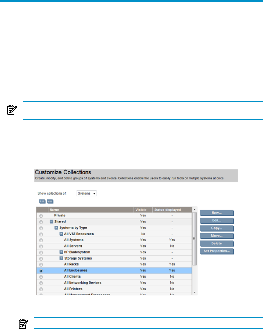 Systems and events are grouped into collections based on information from the HP SIM database.
