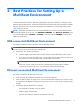 2 Best Practices for Setting Up a MultiSeat Environment A USB-connected environment is ideal when plug-and-play simplicity is desired or in settings with no Ethernet network infrastructure. An Ethernet-connected environment is ideal when the distance needed between the host PC and its clients must be greater than USB allows. It can also help reduce cable clutter around the host PC. NOTE: If the t200 Zero Client drivers are not preinstalled on your host PC, please download them from the HP website.