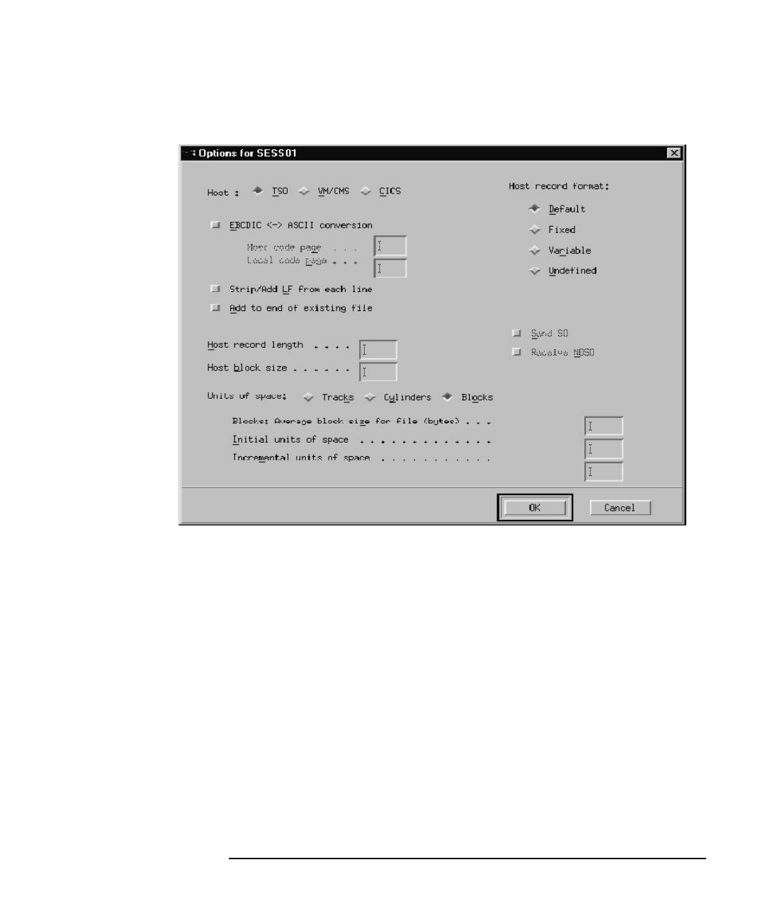 Options for SESSnn dialog box, some of the remaining parameters in the