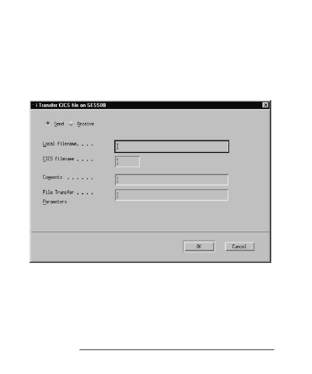 Transfer CICS File on SESSnn Dialog Box Fields