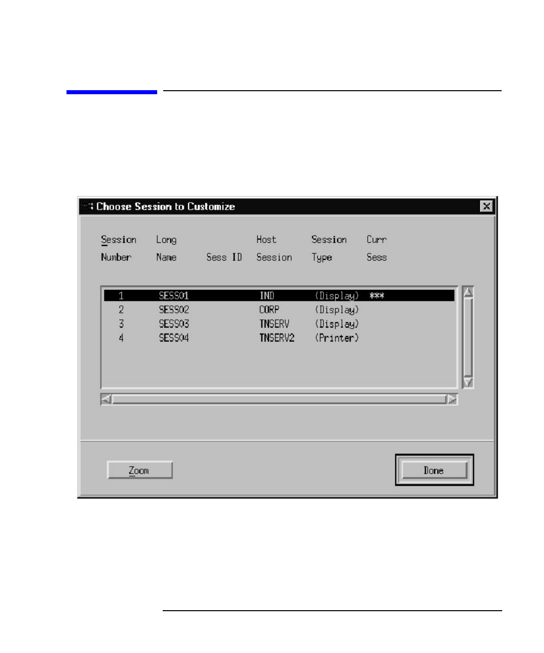 choose Sessions. The dialog box shown in Figure 6-7, “Choose Session