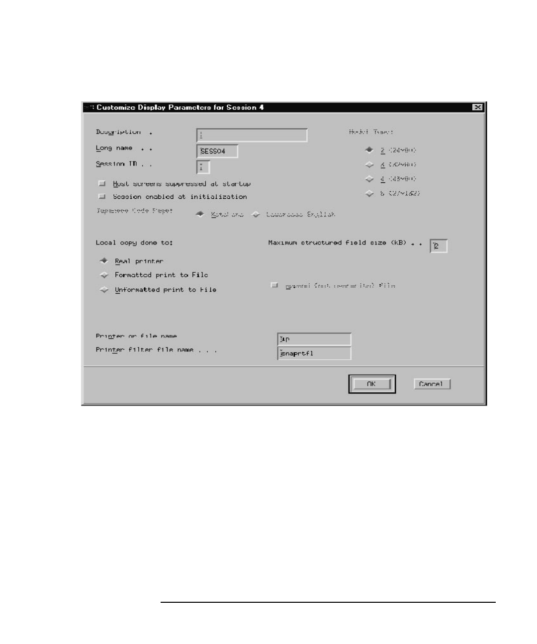 Figure 6-8 Customize Display Parameters for SESSnn Dialog Box