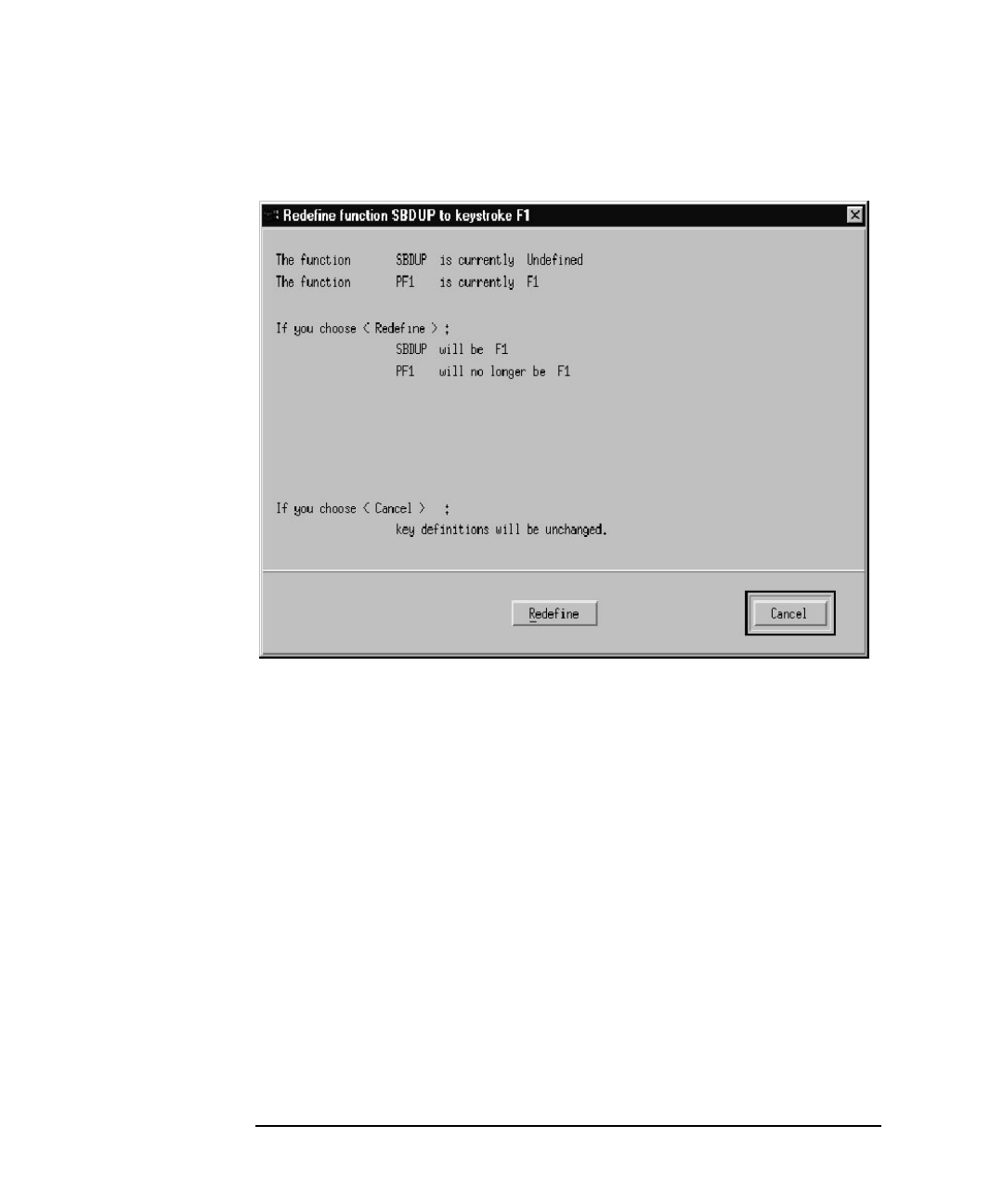 Figure 6-19 New Key Combination Currently Undefined Dialog Box