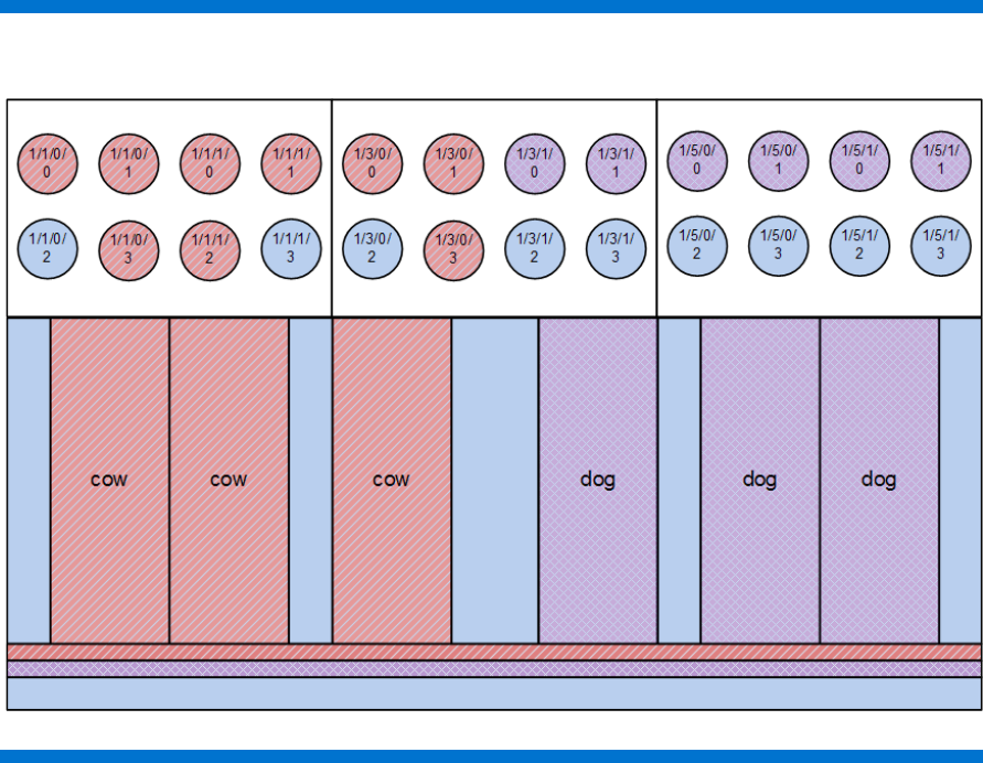 The second virtual partition in the table, dog, requires 70 GB of memory, so it also will not fit within