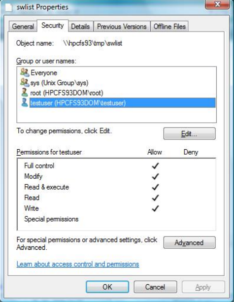 The HP CIFS Server allows Windows 2000 and Windows XP clients to view and set POSIX ACL