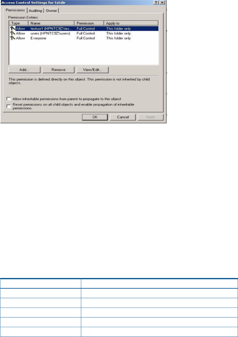 HP CIFS Server Directory ACLs and Windows 2000, Windows XP, Windows Vista, and Windows 7 clients 47